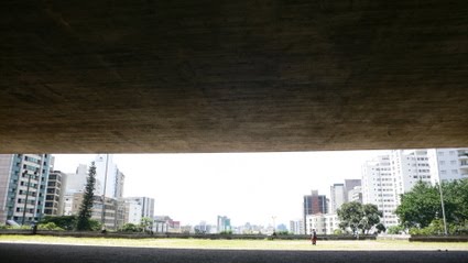 Los enormes pórticos de hormigón pos tensado permiten suspender un enorme bloque transparente, creando debajo una gran plaza de uso público que permite la continuidad del Parque Tenente Siqueira Campos, al otro lado de la Avenida Paulista,