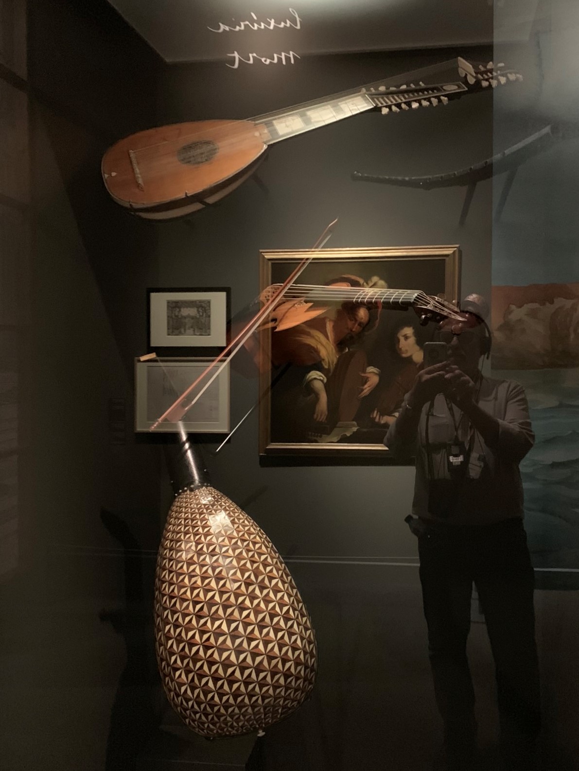 Corneta. 1575-1625. Posible procedencia Italia. Madera de boj y cuero. Archilaúd. 1620-1660. Cristoforo Choc.