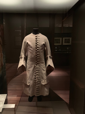 Este abrigo es muy parecido al que Händel luce en el retrato que Bartholomew Dandridge (retratista inglés 1691-c.1754) pintó de él. Los abrigos de lana de calidad con adornos plateados eran habituales entre los miembros de la alta sociedad y la aristocracia londinense que frecuentaban los cafés.