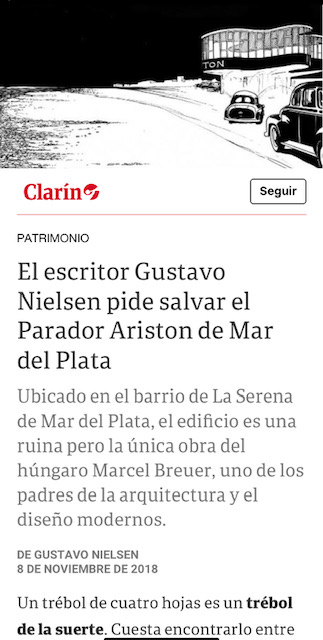 A raíz de la difusión que se le dio a lo que hicimos con el Parador Aristón, y que figura en las páginas de Internet, las vio Victoria Belgrano y me escribió, luego de una interesante conversación acordamos intentar salvarlo juntos.
