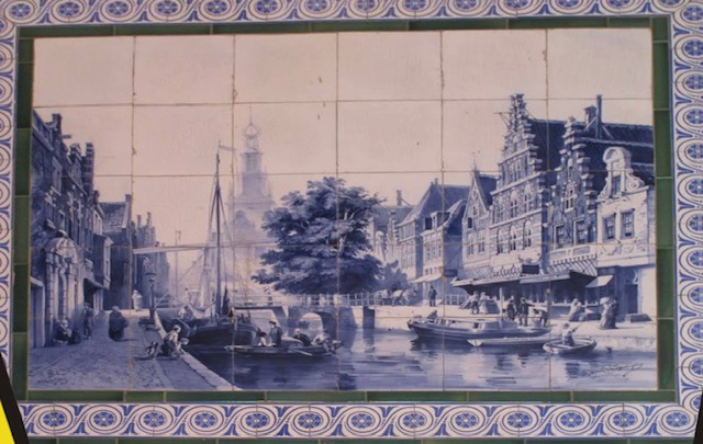A la izquierda del acceso, un mural azul y blanco recrea un paisaje de Ámsterdam (Países Bajos|Holanda).